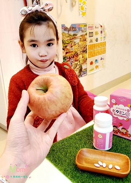 Momo這個愛吃糖的孩子,每次可以吃3-4顆,直接放在嘴巴咬,哥哥不愛咀嚼顆粒狀的食品,【卡蘿琳兒童維他命C+D3口嚼錠】小小一顆像藥丸,所以他直接配水吞食,也可以唷!