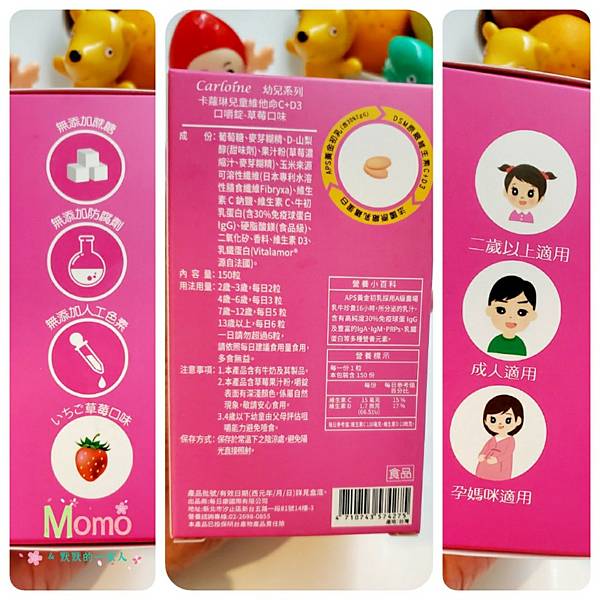 好在之前我就有一直使用卡蘿琳系列產品讓孩子提升保護力,卡蘿琳是一間專為全家人設計營養輔助食品的公司,研發團隊擁有多年的生技經驗,嚴選先進國家專利素材,提供最安心有效的產品,守護全家人健康。卡蘿琳對於兒童營養輔助食品更是用心不少,兒童營養品要“效果”與“美味”兼具,還必須真對口感味道加以研製,所以我家的孩子對卡蘿琳的產品接受度都很高💕;這次卡蘿琳推出【卡蘿琳兒童維他命C+D3口嚼錠-草莓口味】,就上網看看這款維他命C的詳細介紹,這是專為兒童設計的維他命C,可以補足孩子平常不愛吃水果的習慣。上網看到好多媽媽都推薦卡蘿琳,就訂購來讓孩子吃吃看。