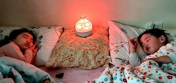 有了投影功能,孩子們每當我講完故事,就直接要我開啟芽比兔故事燈,自動把大燈關掉,然後躺好往天花板投影看,安安~靜靜。