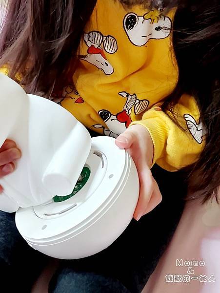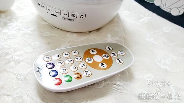 故事機的燈光強度有三段可以調整,怕黑的雙雙喜歡有亮度一點的小夜燈,“強光”可讓雙雙睡前比較有安全感,等到大家睡意漸濃默默媽再用遙控器調整為柔光。