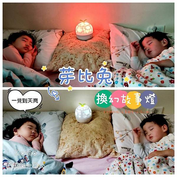 有次默默媽午睡時間跟著孩子躺在床上聽著故事,看燈罩上的投影轉動,覺得眼皮子好重,竟然莫名其妙就睡著了😆。後來我變得很依賴芽比兔說故事睡覺🥱。