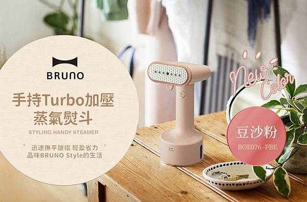 後來上網比較,【BRUNO手持Turbo加壓蒸氣熨斗】外型風格時尚、功能多、還有智慧防護斷電系統,加上BRUNO它是日本人氣家電品牌(日本家電品質很有保障啊!)是一台值得入手的手持蒸氣熨斗。