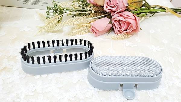 一個則是刷毛蓋,可以清除衣物上的毛髮、灰塵和棉絮。用於長毛料的織物或是較厚實的衣物。