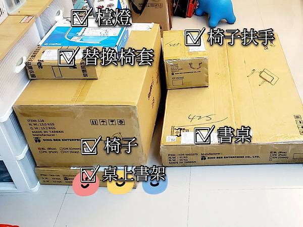 🔻收到【Singbee欣美新酷炫成長書桌椅】總共3大箱+3小箱