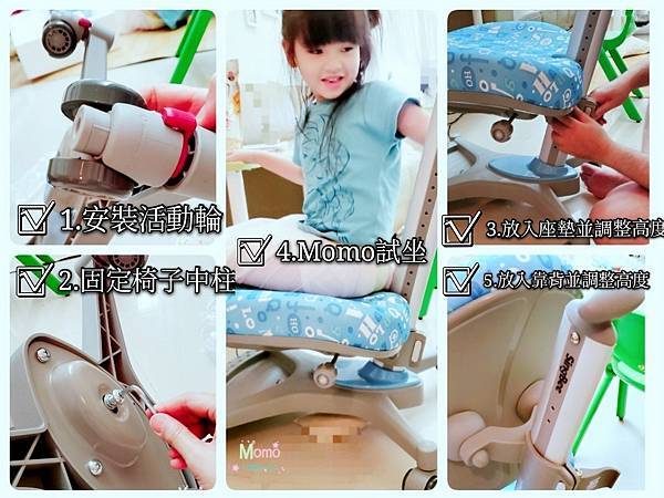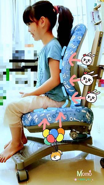 腰與背部都有椅背支撐,臀部有坐墊包覆,Momo覺得好舒服,貼背的地方讓腰背部有依靠,自然的想要坐挺。