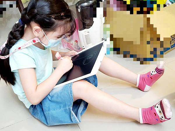 以前Momo畫畫寫字習慣把頭低下來,像鴕鳥一樣