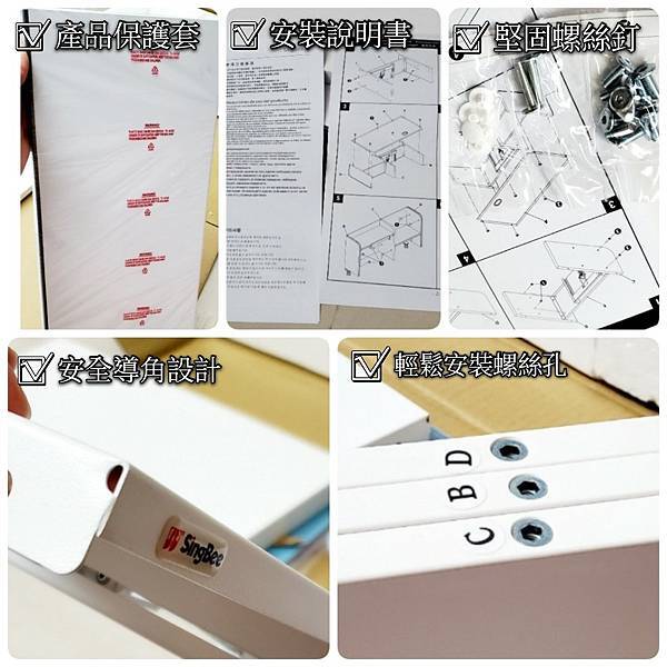 不過不用擔心,Singbee欣有美附上簡潔又清楚的說明書以及零件上的防呆標示,默默媽才剛組裝完,直說比我家的三層櫃還要輕鬆組裝,用“卡投烏”想就能完成了啊😆!
