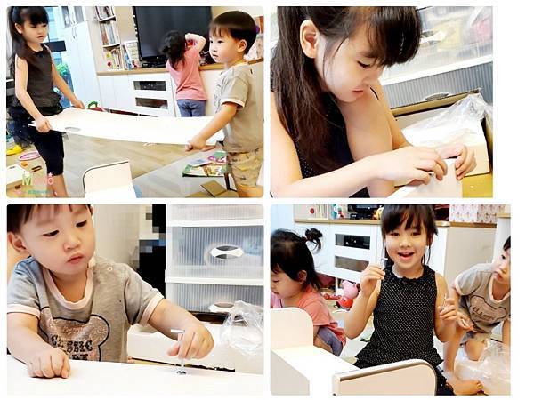 ,唯一需要幫忙的是是桌板與桌腳結合處,需要2個大人搬動桌板,才能能讓書桌安穩的站立起來,不過對於組裝不靈光的人來說,其實真的很簡單