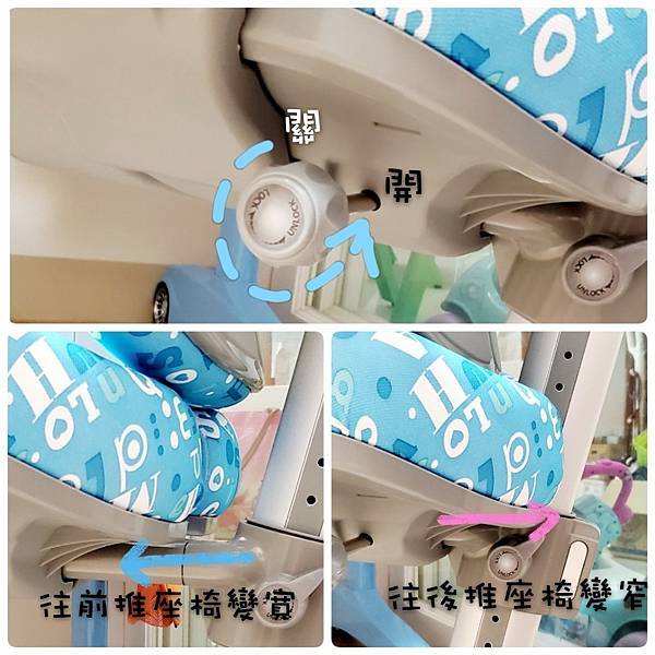 欣美Singbee138卓越成長椅以滾輪方式移動,還好滾輪上的特殊的設計,讓這些小皮皮想推著椅子到處滾的想法破滅,上了鎖,離開座位可以輕鬆移動位置,坐上去就被固定在原地。