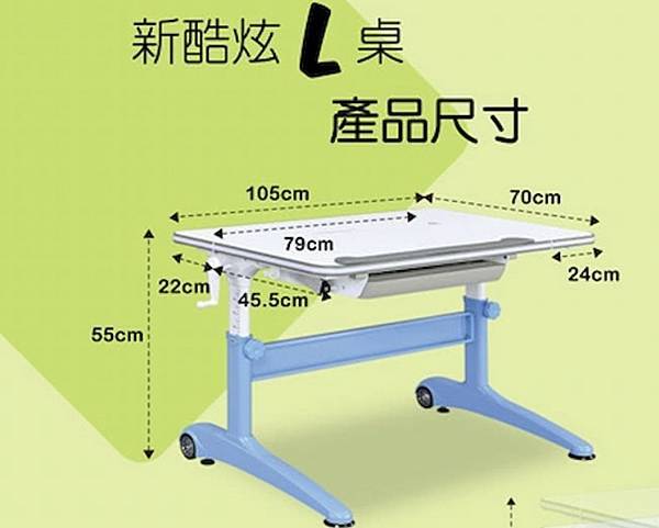 Singbee欣美新酷炫L桌可以依照身高調整桌面高度,無段式的調整更能符合孩子高度的需求!