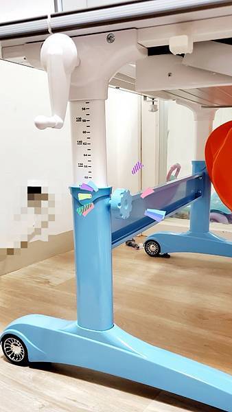 。還好桌腳有止滑設計,孩子們若非使出“吃奶力氣”,我想孩子們是不容易推動它的,不過若想要換個心情,移動至他處,桌腳有一個超酷的法拉利跑車輪,抬高桌子就能輕鬆移動。