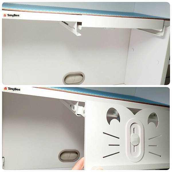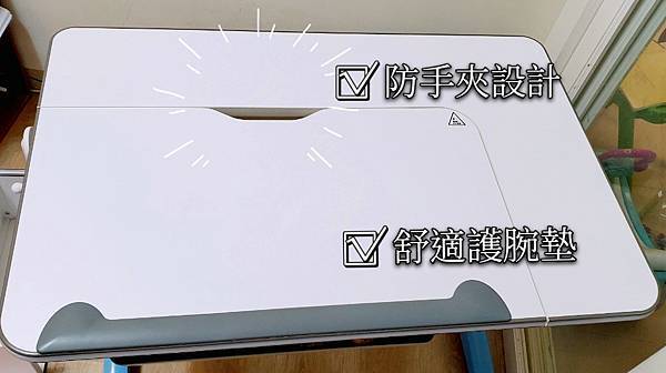 🔻防手夾設計,調整桌面傾斜高度比較安全。