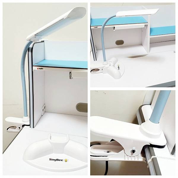 考量家裡的使用空間、孩子年齡差距較大(希望大、小孩都能用)、功能性(防駝背、好寫字、好看書),與耐用程度(男孩破壞力超強😆),我挑選【Singbee欣美-新酷炫L桌+105桌上書架+138卓越椅(水藍色)】讓Momo使用。