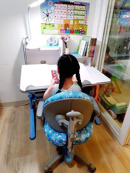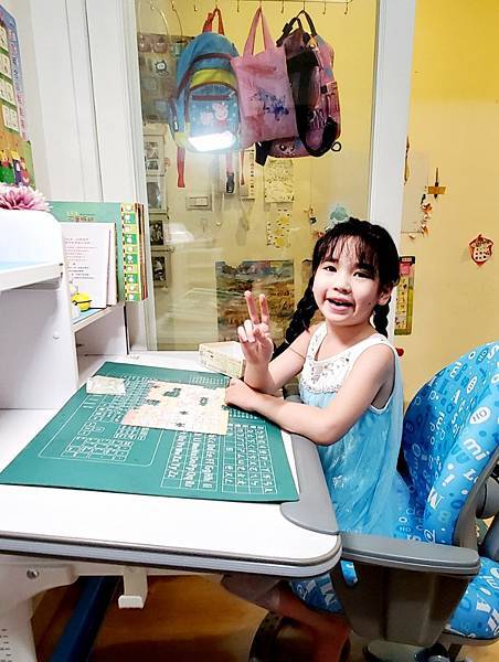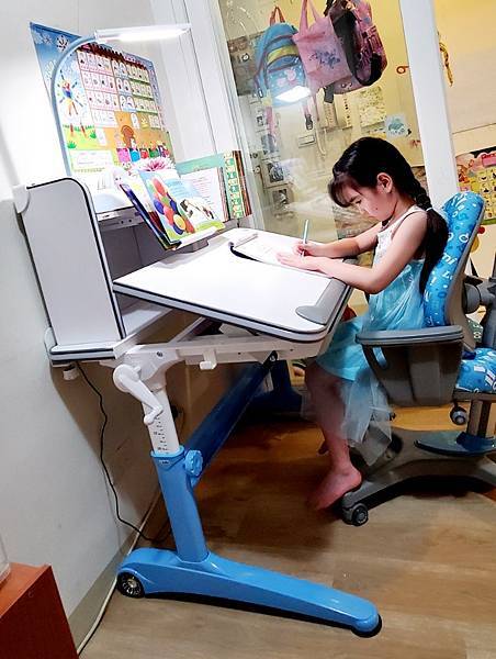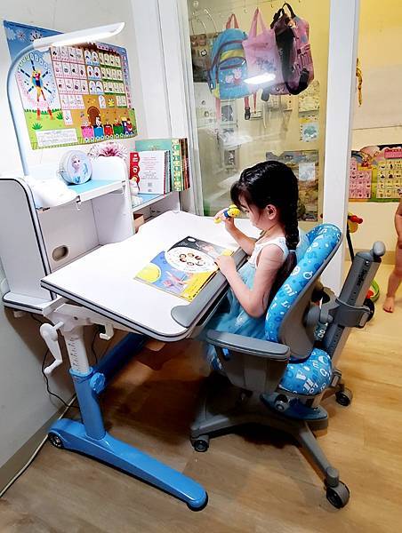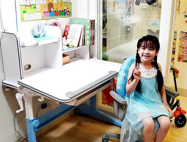 🔻因為Momo是冰雪艾莎迷, 喜歡水藍色商品,這次挑選的水藍色書桌椅雖是小男生的最愛,但也非常適合小女生使用呢!