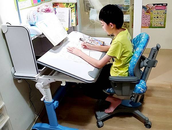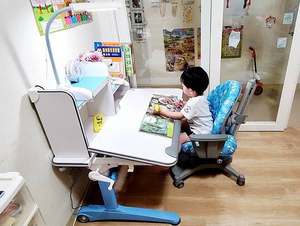 人家說功欲善其事,必先利其器,小孩從學齡開始到大學之後,有12年以上的日子必須讀書寫字,以前總覺得孩子只要喜歡讀書就好,現在看到哥哥身形“崎嶇的樣子,告訴我學齡前買個一張好的書桌椅一定是首要考量。