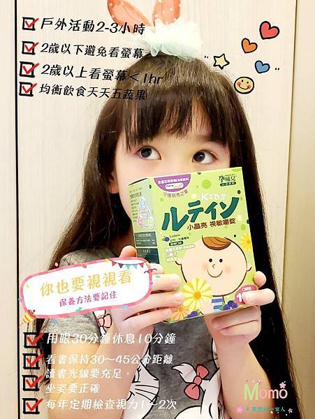 ;對於這麼愛看電視、影片的寶貝,還有只能整天讀書的Yoyo,姿勢不良+長時間看書,默默媽咪真的很擔心,除了讓他們有個健康環境(亮度夠嗎?)、是否適度休息?(休息時間的制定)、戶外活動接觸大自然、定期檢查...以外,我選【孕哺兒小晶亮視敏嚼錠】來保護他們