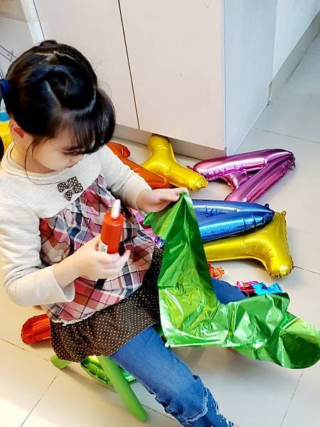 等到慶生當天,Momo一早就急著幫忙吹氣球佈置客廳歡樂氣氛😄,這個姊姊比雙寶還熱衷,不過這是成長過程與美好的回憶,長大了姐弟們感情一定常常久久的