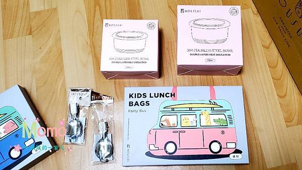 太慘痛的經驗告訴我,這次Momo上小學,一定要找個好看、重實用性的餐袋,以及不會外漏的餐碗。