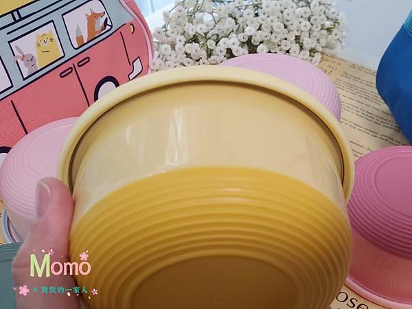 為了方便讓Momo使用,小碗我就不放蓋子,只蓋上中碗蓋子也是可以唷。